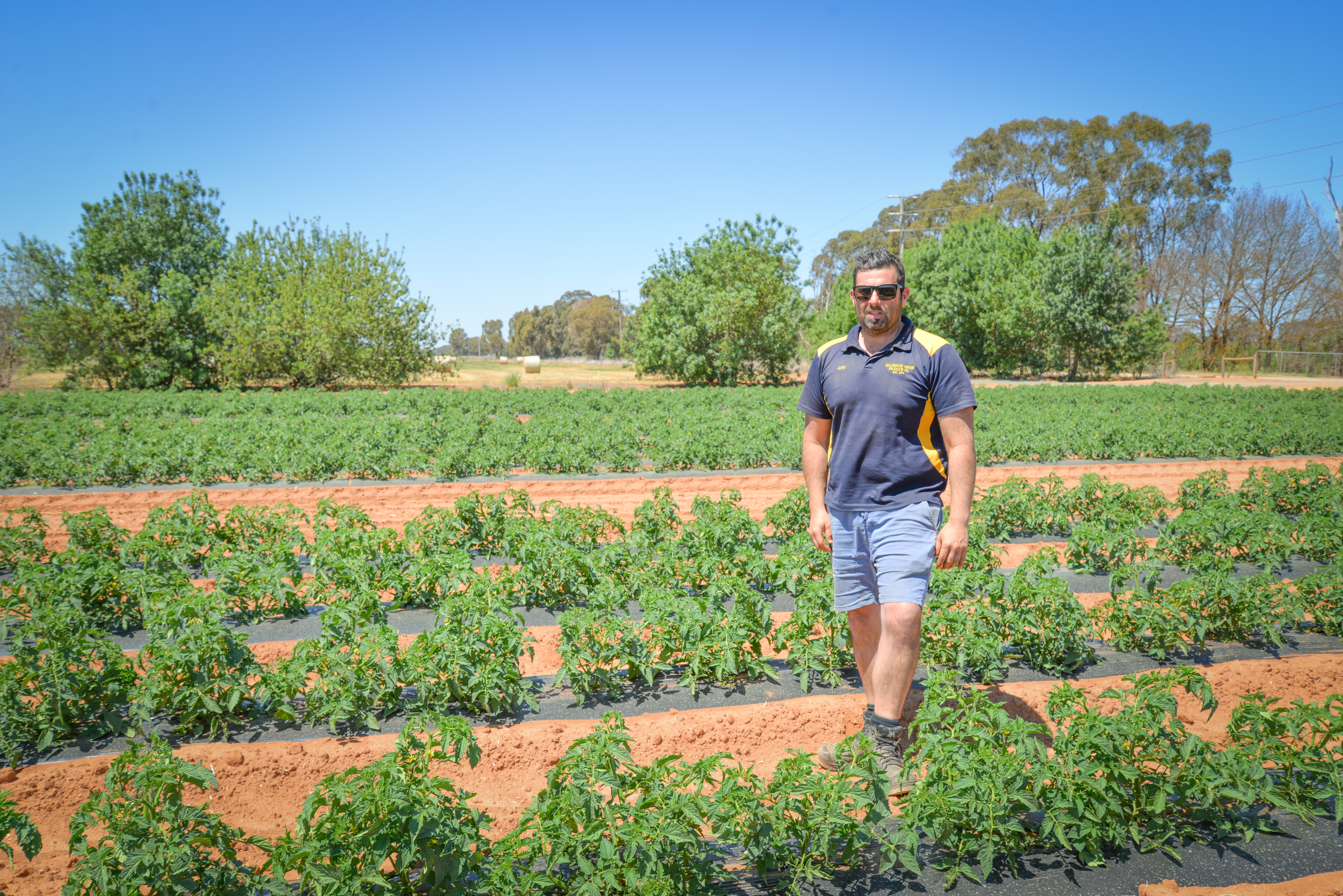 Fields only get used for tomatoes every 4 years in order to balance nutritional demands and provide for a rotation that prevents soil-borne diseases, mainly fusarium. In the other three years of the rotation, the Borzillo family grows hay for local dairy farms with occasionally some oilseeds and cereals. Tomatoes are clearly the cash-crop in this rotation but, with high growing costs and a very variable market and price. The sub-surface drip-irrigation for example needs to get setup just for that one year of tomatoes, so they can be irrigated with water that originates from the Goulburn river and Warringa basin which reaches the area through a series of channels.